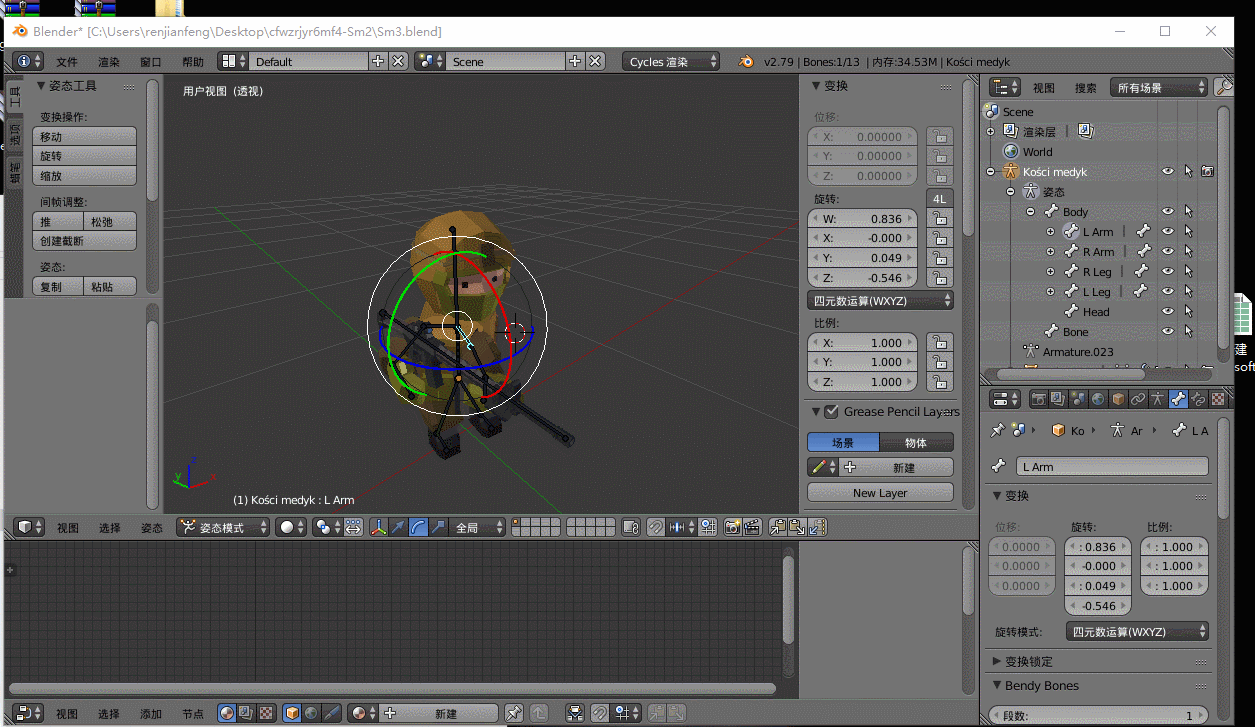 renjianfeng Posted September 5, 2018 Author Share Posted September 5, 2018 sm10.glbThis is the GLB file,You can get bones in the following way scene.getBoneByName("Kości medyk_Head").rotate(BABYLON.Axis.Y, Math.sin(t) * Math.PI); scene.getBoneByName("Kości medyk_L Arm").setAxisAngle(BABYLON.Axis.Y, Math.sin(t) * Math.PI); scene.getBoneByName("Kości medyk_R Arm").setAxisAngle(BABYLON.Axis.Y, Math.sin(t) * Math.PI); scene.getBoneByName("Kości medyk_Bone").setAxisAngle(BABYLON.Axis.Y, Math.sin(t) * Math.PI); Quote Link to comment Share on other sites More sharing options...