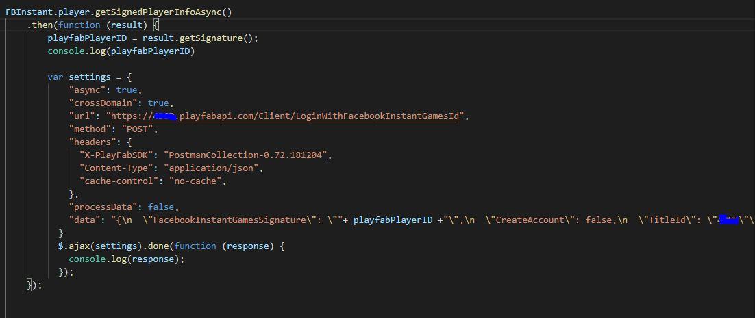 SahJ Posted December 5, 2018 Share Posted December 5, 2018 Hello, I'm doing tests with playfab, when I use the LoginWithFacebookInstantGamesId in the postman program I get this error: I also included it in my project to see if it was something from the postman and it gives me an error of the CORS. This is the code I use to get the Facebook Instant Games Signature Quote Link to comment Share on other sites More sharing options...