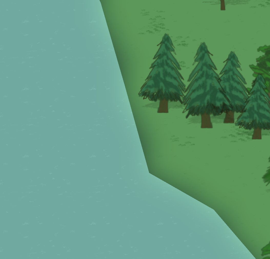 lancety Posted September 14, 2021 Author Share Posted September 14, 2021 I just worked out a way to make the blur looks good enough as I need. how do you think @ivan.popelyshev what I did: 1. background regions map blur - I simply made a BaseRenderTexture on the background graphic and made a sprite from it, the texture is generated with Linear ScaleMode, and make it low resolution to make basic color gradient drawRegionShape(containerTemp, cachedMap, new MapColorDiscrete(), true, true); const bgSprite = new PixiSprite(pixiTool.generateTexture(containerTemp, 1, 2)); 2. apply a BlurFilter to the same sprite - this made a smooth gradient over the ScaleMode used in step 1, because step 1 still can see big rectangel pixel block when zoom in a lot. Using a BlurFitler further smoothed and make the issue to be less noticed private _blurFilter: BlurFilter = new BlurFilter(128, 4); bgSprite.filters = [this._blurFilter]; containerTemp.destroy({children: true}); container.addChild(bgSprite); 3. since my game support very large scale of zoom, the fixed blur value on BlurFilter will cause noticeable difference when zoom out to map level and zoom in to very close region view. So I added a listener to dynamically change BlurFilter.blur value based on zoom level. protected _watchCamScopeLevel(level, prevLevel) { this._blurFilter && (this._blurFilter.blur = 128 / level); } This solution also provide to me a way to customise the display of water region, here I attached a lake region screenshot. What I did: on the background render texture drawing logic of step 1, I used darker green as under water / wet soil color, on top of that I made a graphics with light blue, which I am going to replace with dynamic scrolling water surface texture by calling fillTexture. The Region edge color gradient result Here I attached some sample result images to show the color gradient (or say actually it is blur) on different scale level Quote Link to comment Share on other sites More sharing options...