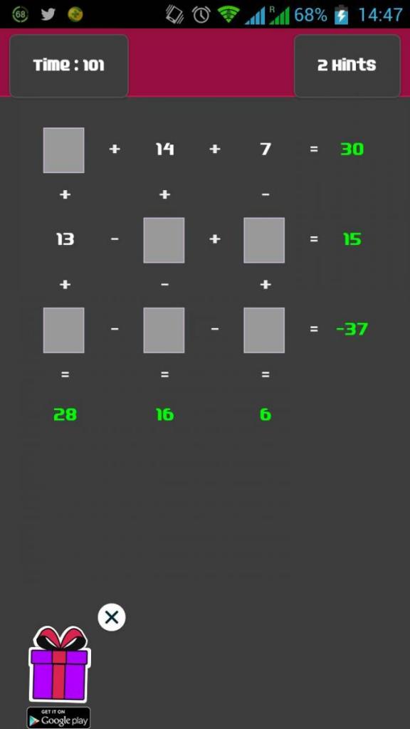 naiton Posted August 26, 2014 Share Posted August 26, 2014 Hi there, this is my first android gameit's like math puzzle you must put the correct number in the box to correct to questionit's 2x2 3x3 and 4x4 dimension and easy - very hard level you can download here Your suggestion are welcome Hope you like it Thank you https://play.google.com/store/apps/details?id=com.appmun.multidimensionmath.lite Quote Link to comment Share on other sites More sharing options...